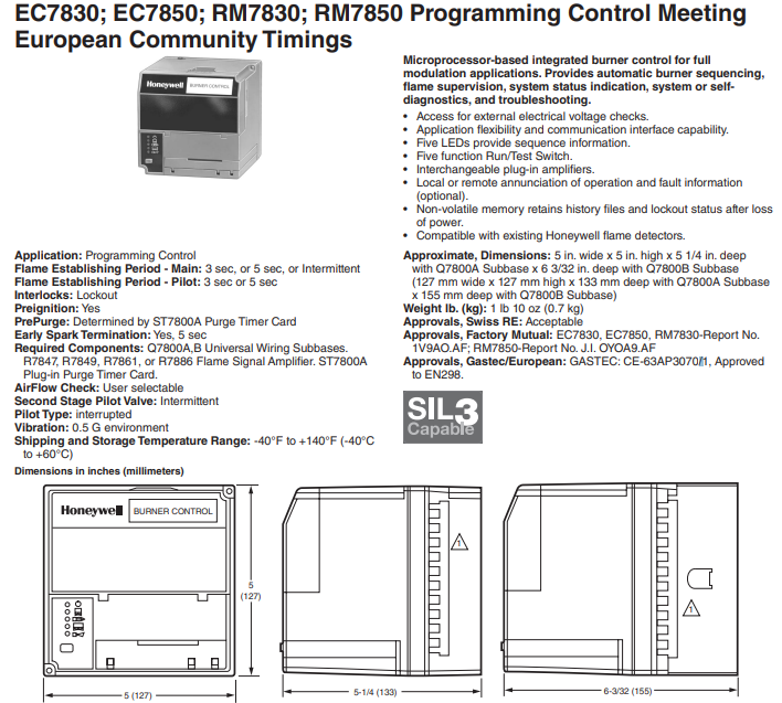 Интегрированная система управления горелкой на основе микропроцессора для приложений с полной модуляцией. Обеспечивает автоматическую последовательность включения горелки, контроль пламени, индикацию состояния системы, системную или самодиагностику и поиск и устранение неисправностей.